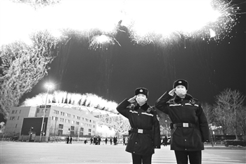 2月4日,北京冬奥会开幕式当天,北京市公安局朝阳分局民警在鸟巢场馆外执勤。节日期间,北京警方统筹做好“春节”“冬奥”安保、疫情防控和社会稳定工作。除夕至初六,全市接报110刑事、治安警情同比分别下降30%和26.7%。