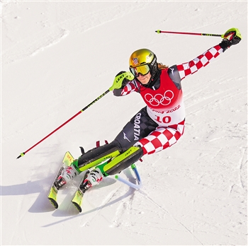 图为2月9日,克罗地亚选手莱昂娜·波波维奇在高山滑雪女子回转比赛中。新华社记者 连振 摄