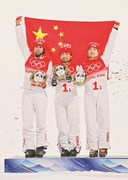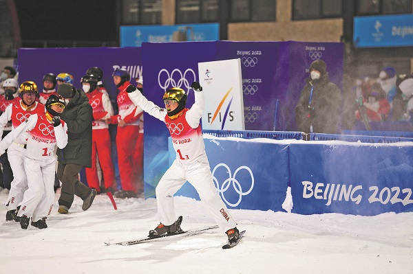 2月10日晚,在张家口云顶滑雪公园进行的自由式滑雪空中技巧混合团体决赛中,由徐梦桃、贾宗洋、齐广璞组成的中国队以324.22分的总成绩,获得银牌。美国队和加拿大队分获冠军和季军。