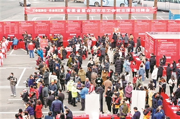 图为在合肥市瑶海区安徽建筑农民工创业孵化园内举办的安徽省暨合肥市总工会就业援助招聘会现场。本报记者 陈华 本报通讯员 常坤 摄