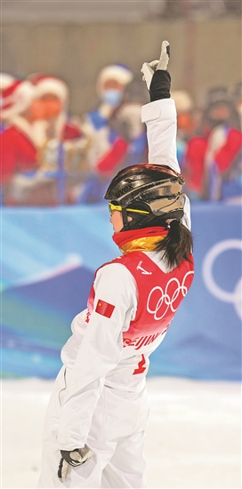 “我是第一,我们在这里赢了!”夺冠后,徐梦桃激动万分。她身披国旗,振臂欢呼,向在场的观众致意。