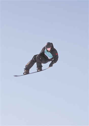 苏翊鸣在比赛中。本报记者 曲欣悦 摄