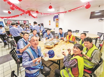 2月15日,元宵节,中建三局组织关爱一线工人“送团圆”活动,深圳分公司为一线建设者举办庆元宵活动,让他们在异乡也能感受到团圆的喜庆氛围。图为一线工人聚在一起包饺子、煮汤圆、猜灯谜,热闹非凡。本报记者 刘友婷 本报通讯员 覃楚涵 摄