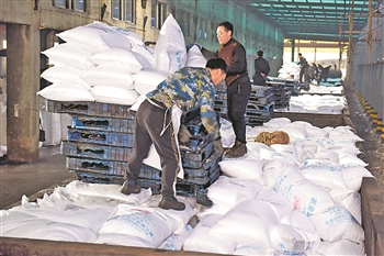 图为2月13日,安徽德邦化工有限公司生产的春耕化肥通过淮南铁路田家庵站运往全国各地。