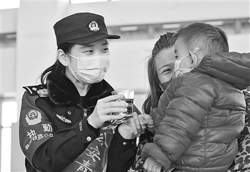 本报讯 针对春运返程客流增加的实际,太原铁路公安局临汾公安处结合外出务工等重点旅客安全出行需求,组织民警成立志愿服务队、普法宣传队,深入候车室、售票厅、重点列车,通过设立报警服务台、车站广播、制作宣传展板等形式,积极为广大旅客提供法律咨询、寻人找物、扶老携幼、应急救援、重点旅客护送等暖心服务,提升旅客安全感、幸福感和满意度。图为车站执勤民警为候车旅客提供温馨服务,解决群众出行实际困难。(赵起超)