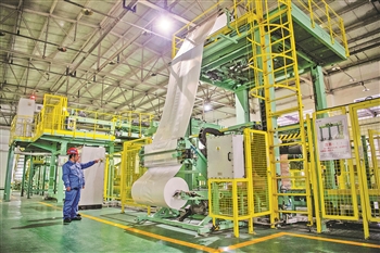 2月12日,工作人员在抽检聚乙烯醇(PVA)产品包装情况。