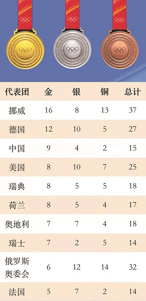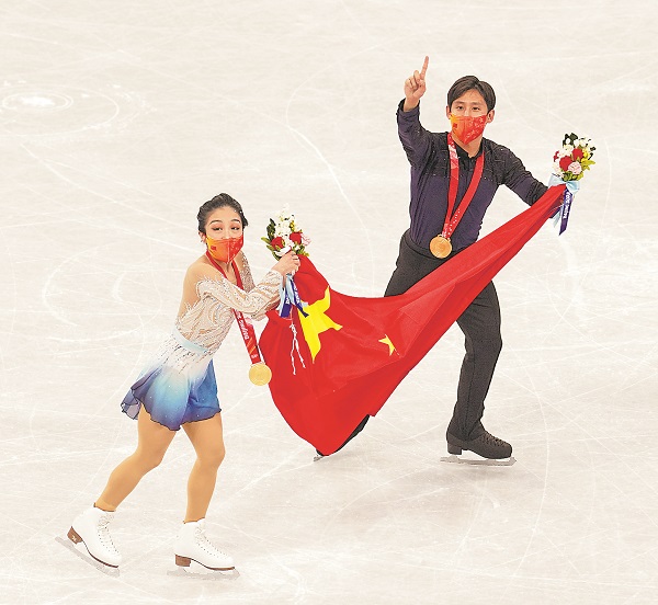 隋文静/韩聪拿下花样滑冰双人滑金牌,中国代表团在北京冬奥会的奖牌总数定格在9金4银2铜,名列金牌榜第三位。