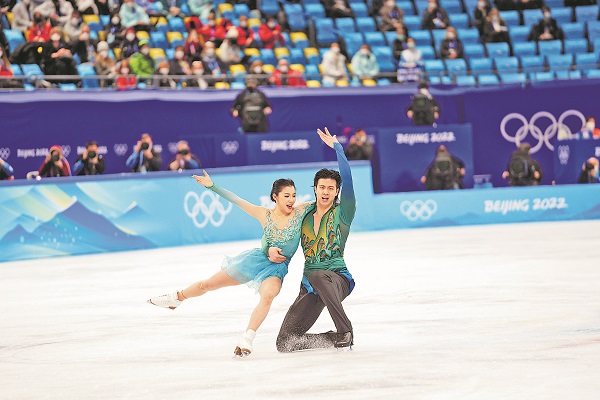 中国冰舞组合王诗玥/柳鑫宇在比赛中。本报记者 王伟伟 摄