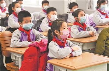 图为2月21日,在北京市海淀区双榆树第一小学,二年级的学生在上课。