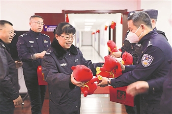 2月21日,太原铁路公安处工会领导带领工作人员慰问奋斗在春运安保一线工作的公安民警。春运期间,该处民警强化使命担当,加班加点,严格落实各项安保与疫情防控措施,确保列车运行安全。本报通讯员 魏建东 摄