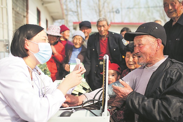 在山东费县,医疗工作者为村民义诊。本报记者 杨登峰 摄