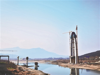 摆宴坝嘉陵江大桥是广元市唯一的钢绳斜拉观光桥和地标工程,桥长1422米,主塔高约130米。据中铁十五局摆宴坝嘉陵江大桥项目总工聂宁波介绍,该桥是广元市重要的民生工程,建成后将大大改善当地交通条件。杨晓英 闵延芳 摄