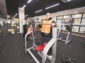 2月22日,在湖州市织里镇港西村残疾人之家,来自周边的残疾人(包括精神残疾、智力残疾和肢体残疾)使用健身器械锻炼。