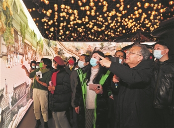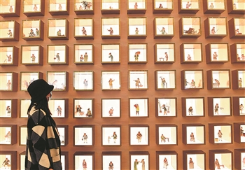 2月20日,观众在南京德基美术馆“金陵图数字艺术展”上观赏由533个“画中人”制成的玩偶陈列。