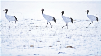 图①:三江源国家公园黄河源园区内的黑颈鹤。新华社记者 张龙 摄