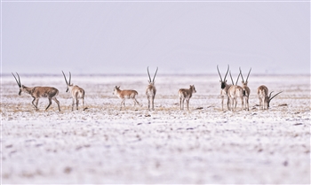 图③:藏羚羊在三江源可可西里地区活动。新华社记者 吴刚 摄
