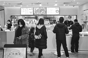 2月26日,北京市东城区的一家咖啡店内,顾客们正在等候咖啡。