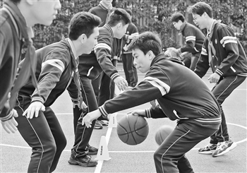 2月23日,在课后服务时间,格致初级中学的学生在参加篮球社团课程。“双减”后的新学期,上海中小学继续有序推进课后服务。在上海市格致初级中学,数十项社团课程向学生开放自主申请,满足学生自主选择、自我发展的需要。新华社记者 刘颖 摄