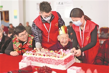 3月3日,河北唐山市丰南区青年志愿者为丰南区福康养护中心的老人们过集体生日。
