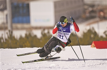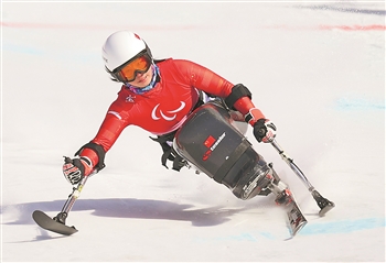 3月6日,中国选手张雯静在比赛中。当日,北京2022年冬残奥会残奥高山滑雪项目女子超级大回转(坐姿)比赛在延庆国家高山滑雪中心举行,中国选手张雯静获得季军。新华社记者 雒圆 摄