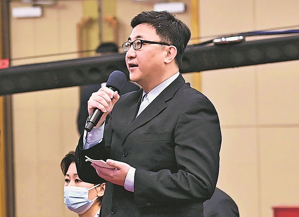 3月10日,本报记者车辉在“委员通道”采访活动中提问。李鑫 摄