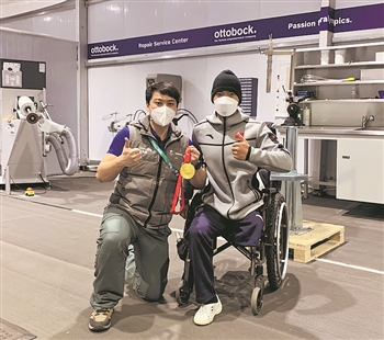 “真的太感谢了!”反复试坐雪橇后,刘子旭连声向朱思维道谢。离别时,他还拿出自己的冬季两项男子短距离(坐姿组)金牌,和朱思维合影留念。今年30岁的朱思维来自中国残疾人辅助器具中心,是一名专业辅助器具维修技师,曾在2018年平昌冬残奥会参与辅助器具维修保障工作。
