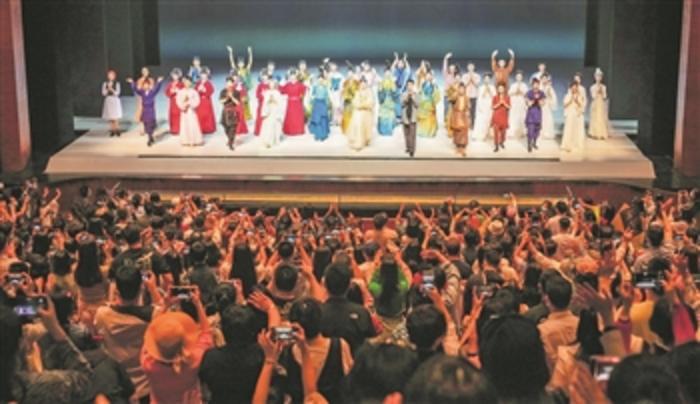 3月5日,舞蹈诗剧《只此青绿》在海南省歌舞剧院精彩上演,现场掌声雷动,演职人员谢幕三次,观众仍然不舍离去。张茂 摄/人民图片