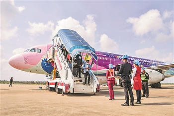 海口迎“消博号”首航航班