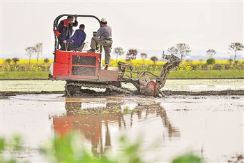 3月14日,在湖南常德桃源县陬市镇小马山村,农民学员练习操作农机。春耕备耕时节,该县开展“送农机培训下乡”活动,把农业机械培训搬到田间地头。新华社记者陈泽国 摄