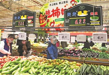 3月14日,市民在青岛市市南区一商超选购蔬菜。
