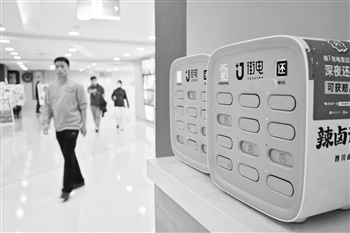 3月13日,北京市东城区的一家商场内放置的共享充电宝。
