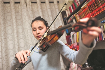 图为回到家中的马奕菲再次演奏《雪花》。新华社发(李靖 摄)