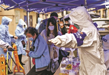 当日,上海迎来降雨降温天气,医务人员、警察、社区工作者、志愿者等坚守抗疫一线,为民服务。3月16日、17日,上海启动新一轮网格化核酸筛查。