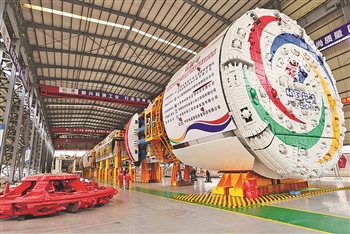 3月27日,由中国电建水电十四局和中铁工程装备集团共同研制的世界引调水工程最大直径硬岩掘进机“弘毅号”在昆明装备车间成功下线,开始进行全面调试阶段。预计今年8月在滇中引水工程香炉山隧洞(大理1段2标)开启施工掘进任务,为工程提速建设助力。梁志强 摄