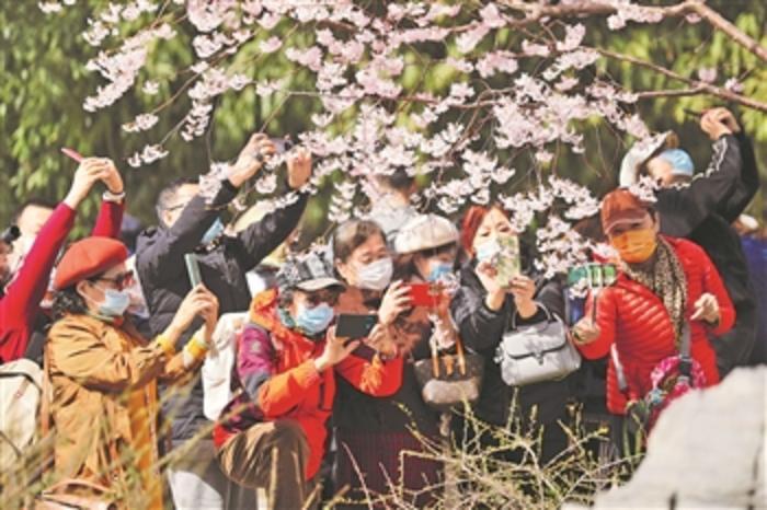 3月28日,北京玉渊潭公园樱花绽放,吸引着游客赏樱拍照。徜徉于樱花树下,泛舟于湖面之上,游客们尽情欣赏花红柳绿、畅享明媚春光。本报记者 刘金梦 摄