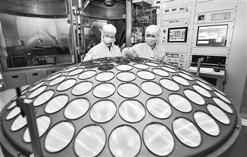 3月25日,江苏淮安澳洋顺昌光电技术有限公司,工人加紧生产订单芯片。近年来,该公司加大产品迭代升级研发,瞄准高端市场和一线客户,围绕高光效白光芯片和显示屏用芯片进行技术突破,产品销往海内外市场。赵启瑞 摄/人民图片