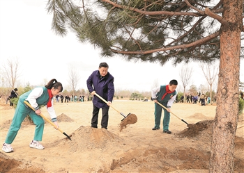 在京中共中央政治局委员、中央书记处书记、国务委员等参加植树活动。