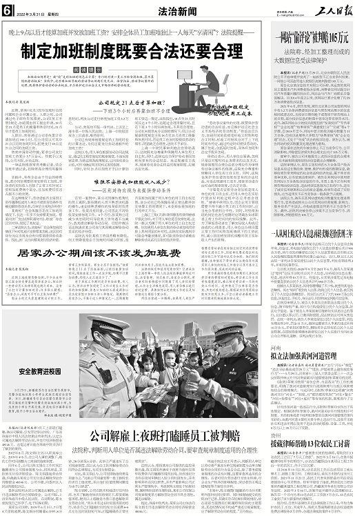 徐焰还表示,用人单位应厘清,加班只是应对暂时性业务需求的应急方式。规章制度的合理合法部分理应作为审理劳动争议案件的依据,法院充分尊重和保障用人单位用工自主权。同时,法院也保护劳动者因加班而享有的合法权益,对违法规避用工成本、侵害劳动者合法权益的规章制度,应认定无效。