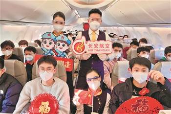 长安航空执飞学生返乡包机航班。