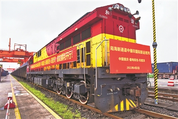 4月2日,陆海新通道中缅印国际联运班列(重庆-仰光-印度洋)在重庆铁路集装箱中心站首发,这是陆海新通道首次开辟直通印度洋的新线路。