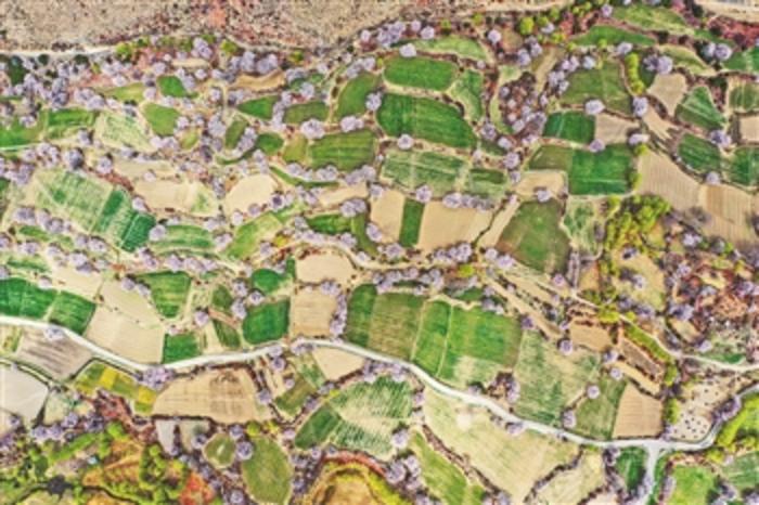 图为林芝市巴宜区布久乡朵当村桃花园(3月28日摄,无人机照片)。新华社记者 洛卓嘉措 摄