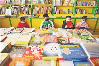 4月4日,小读者在银川市鼓楼新华书店看书。