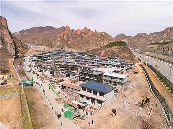 这是4月5日拍摄的双滦区大贵口村民居改造施工现场(无人机照片)。