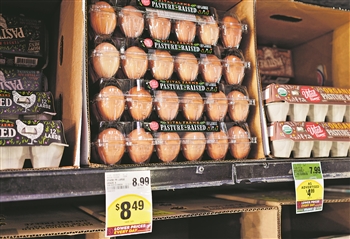 这是4月5日在美国旧金山湾区米尔布雷一家超市拍摄的鸡蛋。根据美国农业部4月4日公布的数据,美国20多个州暴发高致病性禽流感疫情,并导致鸡蛋价格猛涨。美国媒体4日报道称,该国鸡蛋均价已经达到每打2.88美元,相较于2月份发现首例禽流感确诊病例时上涨了52%。新华社发(李建国 摄)