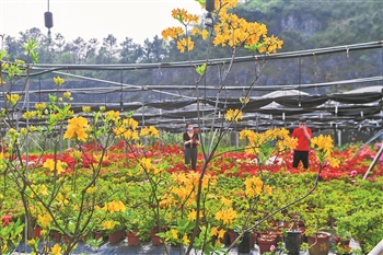 近日,浙江省湖州市吴兴区东林镇三合村由废弃矿山改造的花卉种植园里鲜花盛开,吸引游客前来观赏购买。该废弃矿山经过覆绿整治,被打造成乡村特色花卉种植园,目前有村民承包户20多户,种植有杜鹃、兰花、罗汉松等各类花卉、苗木数十种,推动了乡村旅游的发展,带动了周边农民就业。