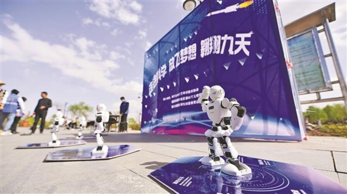 4月17日,宁夏银川兴庆区丽景街道泰和社区开展以“走进科学 放飞梦想 翱翔九天”为主题的航空航天科普活动,培养青少年航空航天兴趣爱好,普及航空航天知识。新华社记者 王鹏 摄