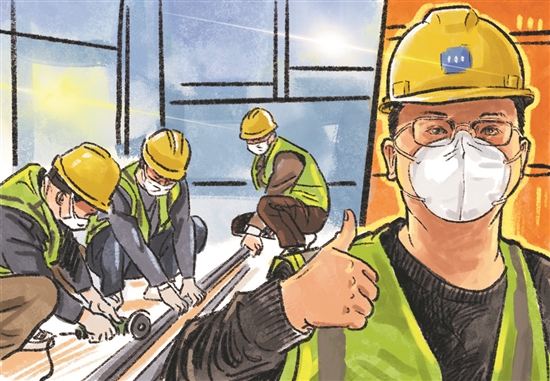 没有片刻休息,韦建举接过了他的任务——4天内完成12000平方米通风系统的安装。这相当于平时两个月的工作量,而彼时物流不通,材料运输、人员集结全都迫在眉睫。韦建举带领工人争分夺秒组织材料及建设者队伍、协调机械设备、确保各专业穿插施工。