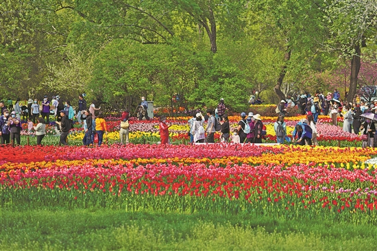 图为4月18日游人在国家植物园内赏花。本报记者 王伟伟 摄