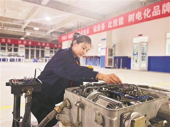 4月12日晚,中铁电气化局集团第一工程有限公司职工孙亚杰在实训基地一边看图纸,一手拿着万用表量电压查找故障。她家距离单位只有两公里,但为了提高施工技能,充分利用业余时间练习实作,她选择了住在单位。安静的夜晚,实训基地里传来道岔来回转动的声音、继电器接点来回跳动的声音,这就是孙亚杰充实的“夜生活”。史立霞 摄