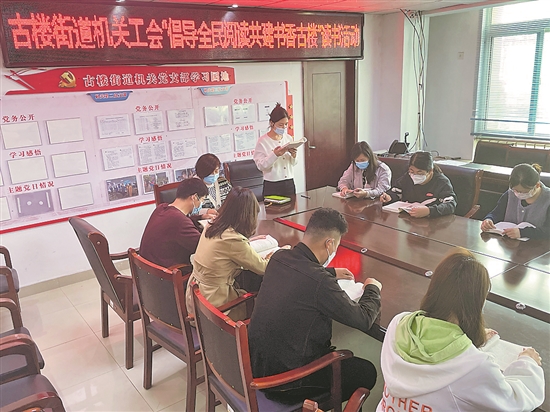 在世界读书日来临之际,4月18日,山东省聊城市东昌府区古楼街道机关工会组织开展了“倡导全民阅读 共建书香古楼”主题读书会活动。读书会上,干部职工踊跃提问,畅谈读书感悟、经验。大家表示,今后将继续用好职工书屋等工会的文化活动阵地,多读书、读好书,养成终身学习的习惯。本报通讯员 朱健双 摄